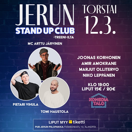 Jerun Stand Up Club esittää kerran kuukaudessa torstaisin hauskaa Stand Up Komediaa.